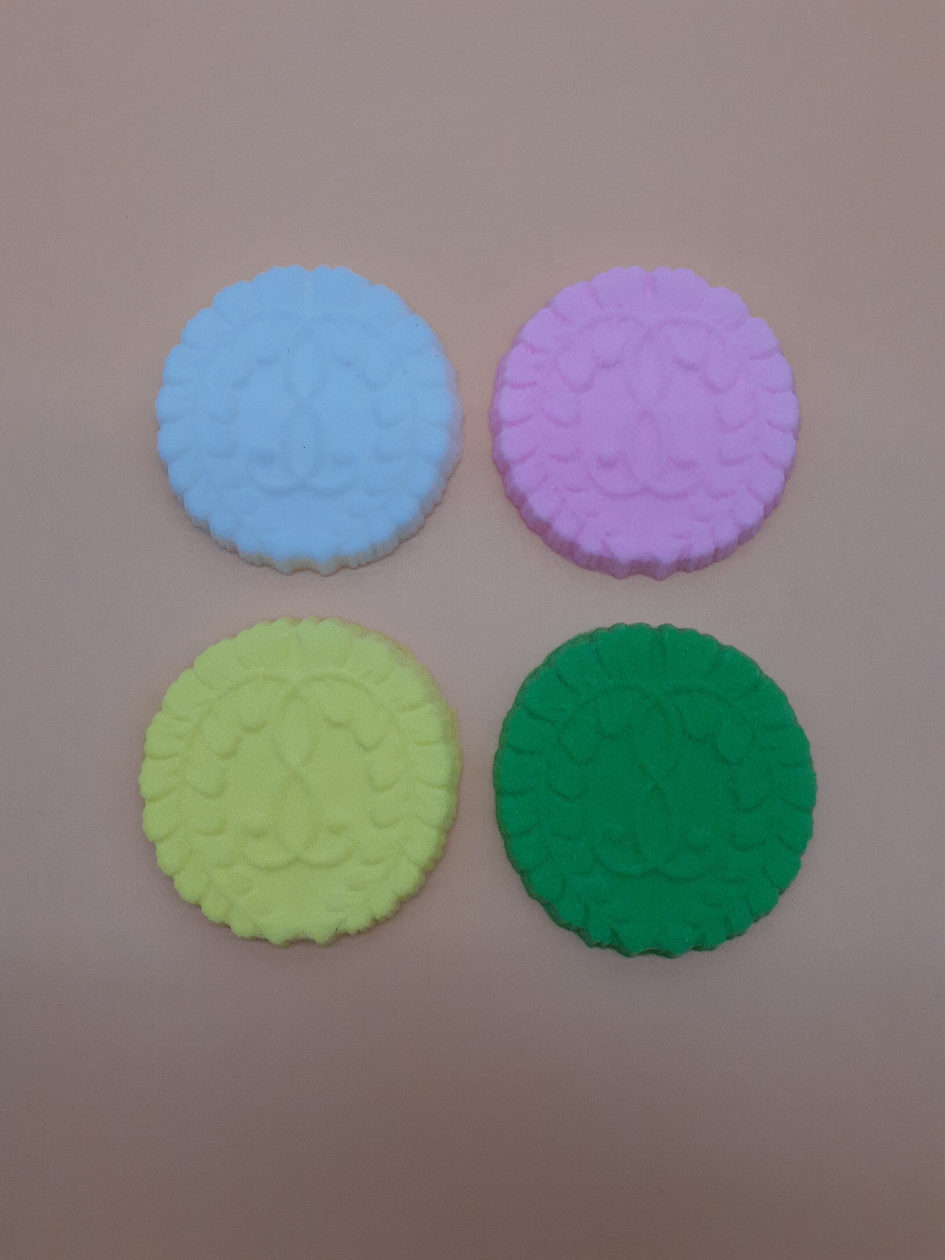 御華束用の落雁です。直径5.5cmです。 色:白 ピンク 緑 黄 紋:下がり藤(西本願寺)八藤(東本願寺) 牡丹 菊など ご注文の際は、色、紋ををご指示ください。